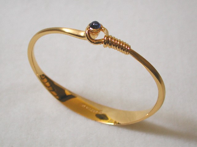 Armreif in 750/‰ Gelbgold mit einem Saphir Cabochon.