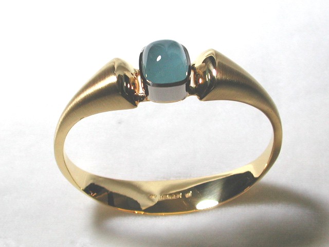 Armreif in 750/‰ Gelb- und Weißgold mit einem Aquamarin Cabochon.