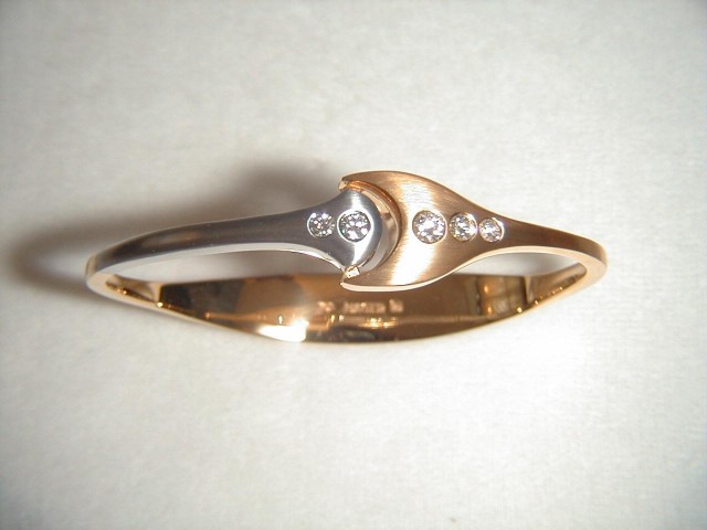 Armreif in 750/‰ Gelb- und Weißgold mit fünf Brillanten.