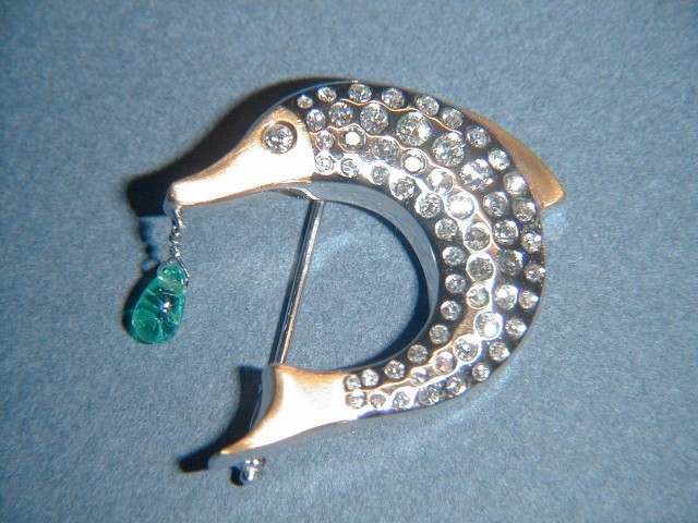 Brosche in 950/‰ Platin und Feingold mit 59 Brillanten und einer Smaragd-Pampel.