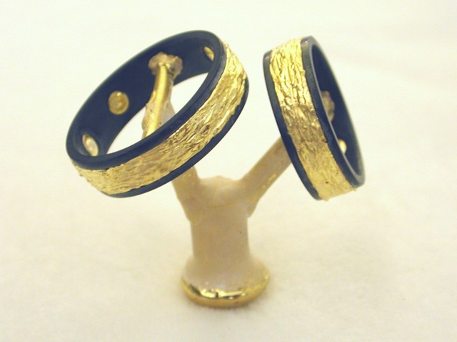 Eheringe in 950/‰ Platin mit strukturiertem Feingold (hier mit Anguß).
