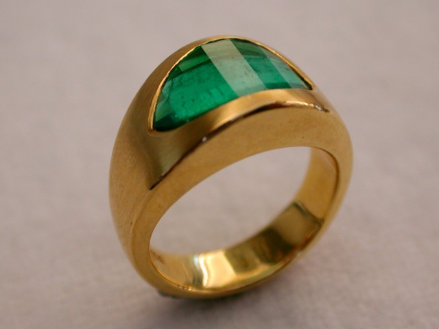 Ring 750/‰ Gelbgold mit einem Smaragd im Treppenschliff.