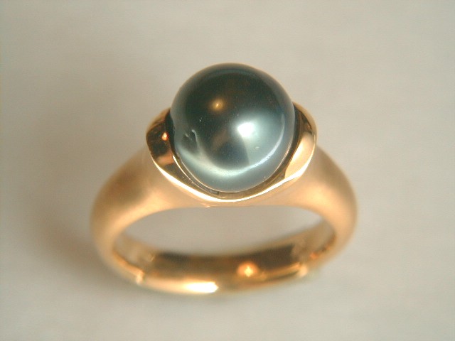 Ring in 750/‰ Gelbgold mit einer Tahitizuchtperle.