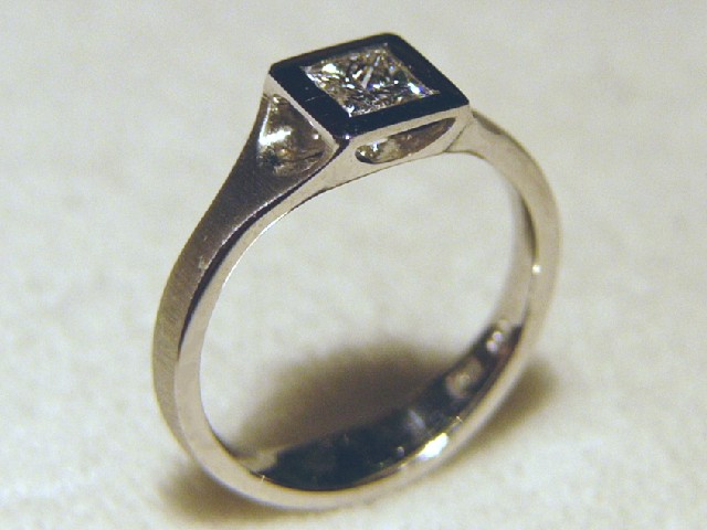 Ring in 750/‰ Weißgold mit einem Diamant Prinzess 0,36 ct FW VS.
