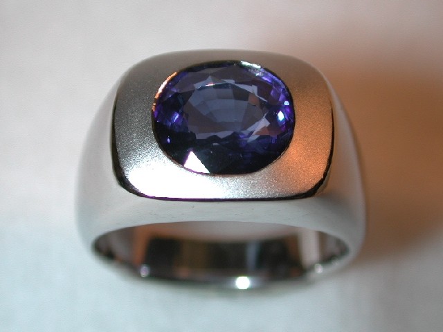Ring in 750/‰ Weißgold mit einem facettierten blauen Saphir.